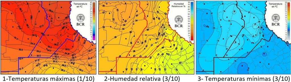 En la red de estaciones de GEA/BCR, en este jueves se midieron temperaturas mínimas de 1,4 °C en General Pinto; 1,7°C en Rojas y 1,8°C en Zavalla, de entre los valores más bajos, valores que se consideran heladas agronómicas.