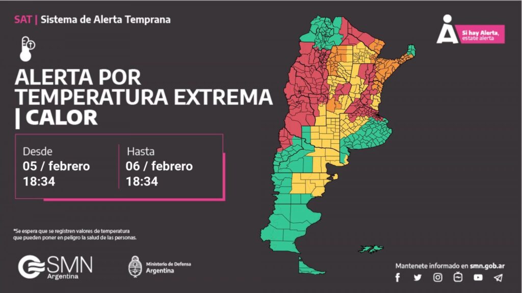 En las últimas horas, el SMN mantuvo a varias provincias bajo alerta roja, naranja y amarilla por temperaturas extremas, a la vez que publicó un ranking de las localidades con mayores registros, la gran mayoría ubicadas en zonas de producción agropecuaria importante.