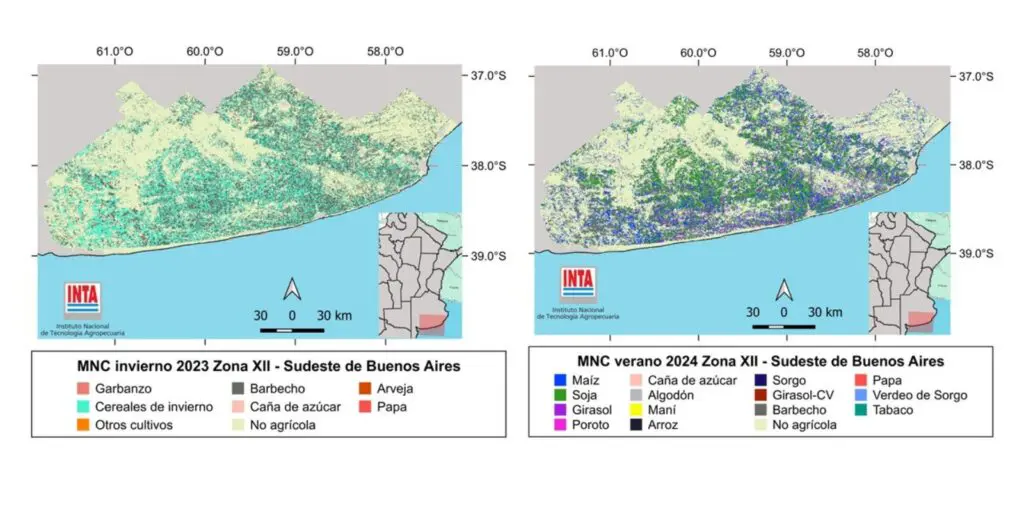 Un mapa brinda información sobre la distribución espacial de clases previamente definidas. Constituye una manera de ordenar y simplificar una gran cantidad de información para su visualización y análisis. “Dada la dinámica de la agricultura argentina, es necesario generar los mapas en cada campaña agrícola”, explicó Diego de Abelleyra, investigador del Instituto de Clima y Agua del INTA.