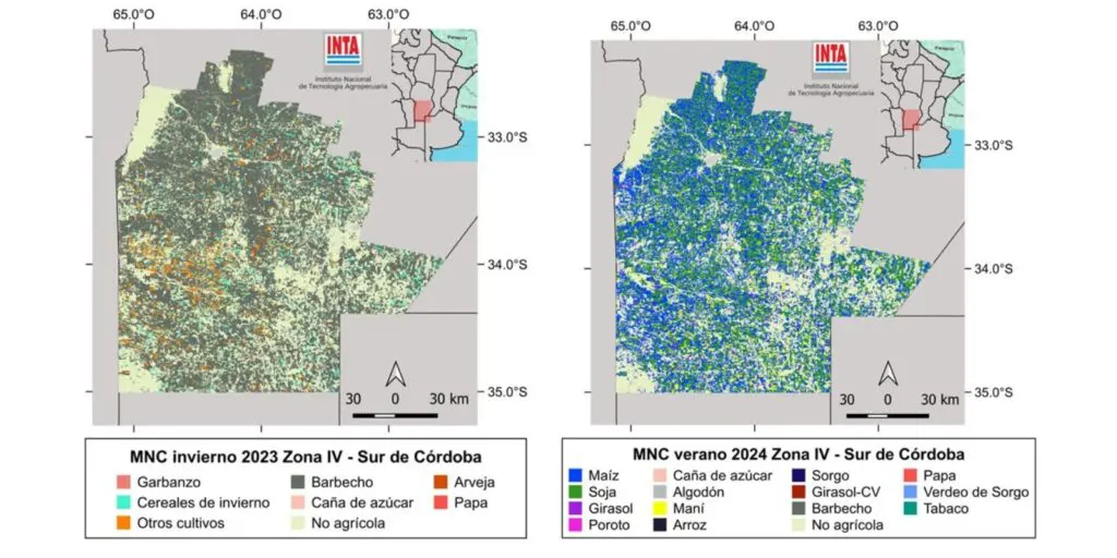 A través de distintas unidades del INTA distribuidas a lo largo de las regiones agrícolas, se hacen relevamientos para obtener registros de los cultivos implantados en forma ininterrumpida desde la campaña 2018/2019. Esto permitió la realización de mapas de cultivos a lo largo de seis campañas agrícolas consecutivas, y así generar información con alto valor histórico sobre la ubicación de los cultivos en Argentina durante este período.